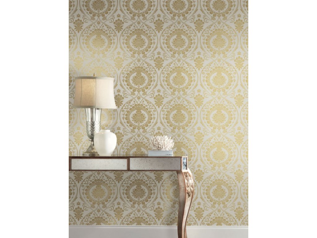 Béžová předklížená zámecká tapeta na zeď DM4903, Damask, York, velikost 0,685 x 8,2 m