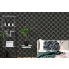 Hladká černá vliesová tapeta s geometrickým vzorem v barvě růžového zlata.