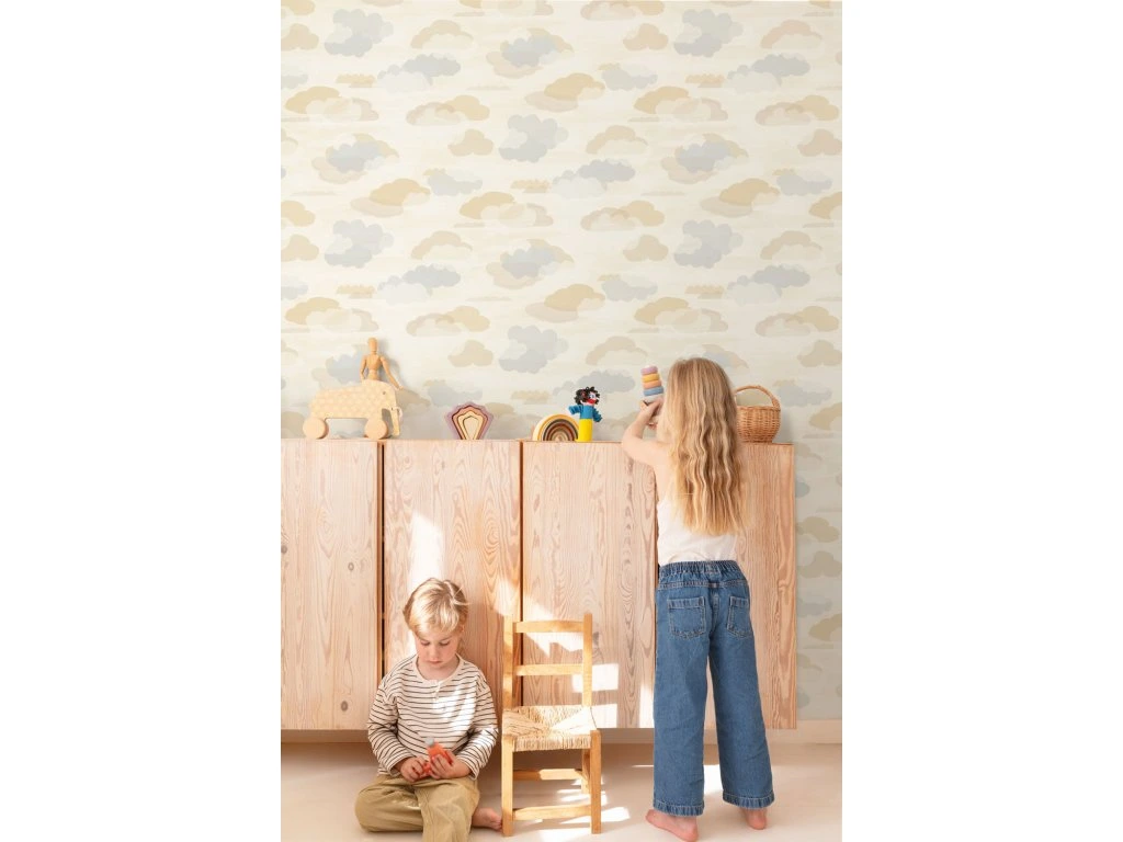 Dětská vliesová tapeta na zeď, béžová, mráčky, LD2019, Little Dreamers, Grandeco, velikost 10,05 x 0,53 m