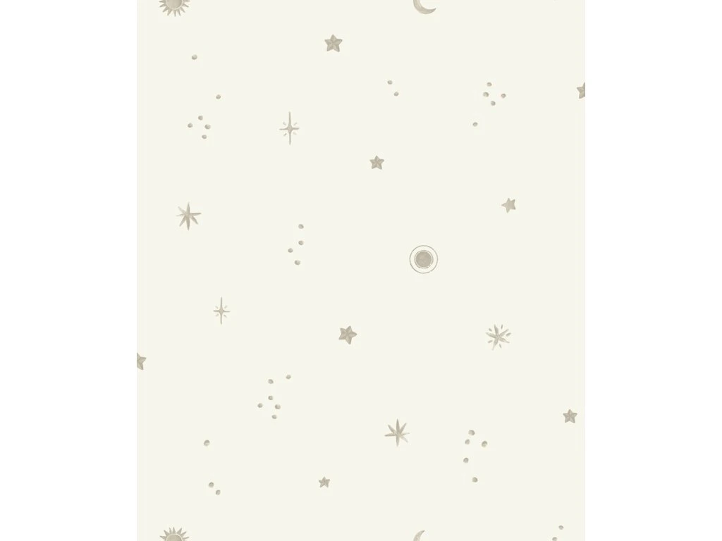 Dětská vliesová tapeta na zeď, bílý podklad, motivy hvězdiček, krupičková textura.