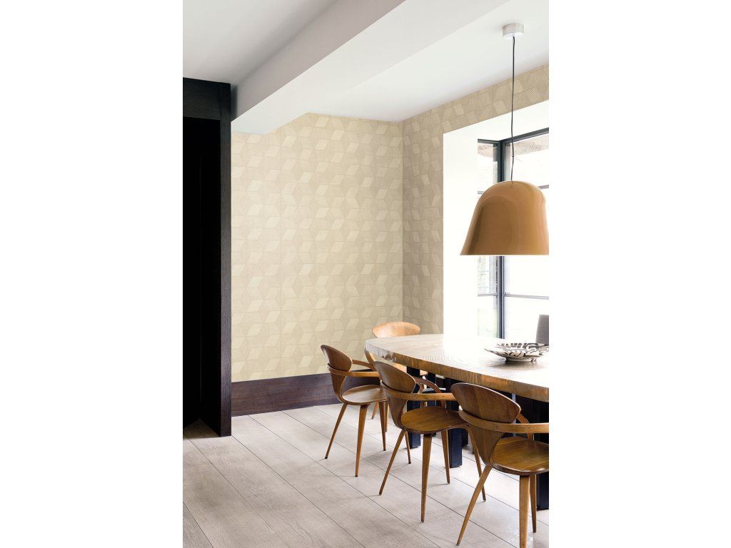 Geometrická vliesová tapeta na zeď, béžovo-zlatá, ORB502, The Texture Book, Masureel, velikost 10,05 x 0,53 m