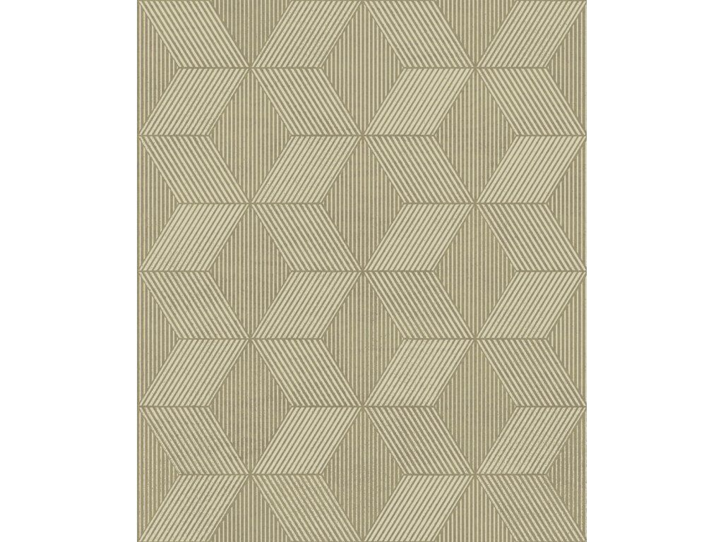 Vliesová tapeta na zeď, efektní geometrický vzor v odstínech béžové / pískové a kovově zlaté.