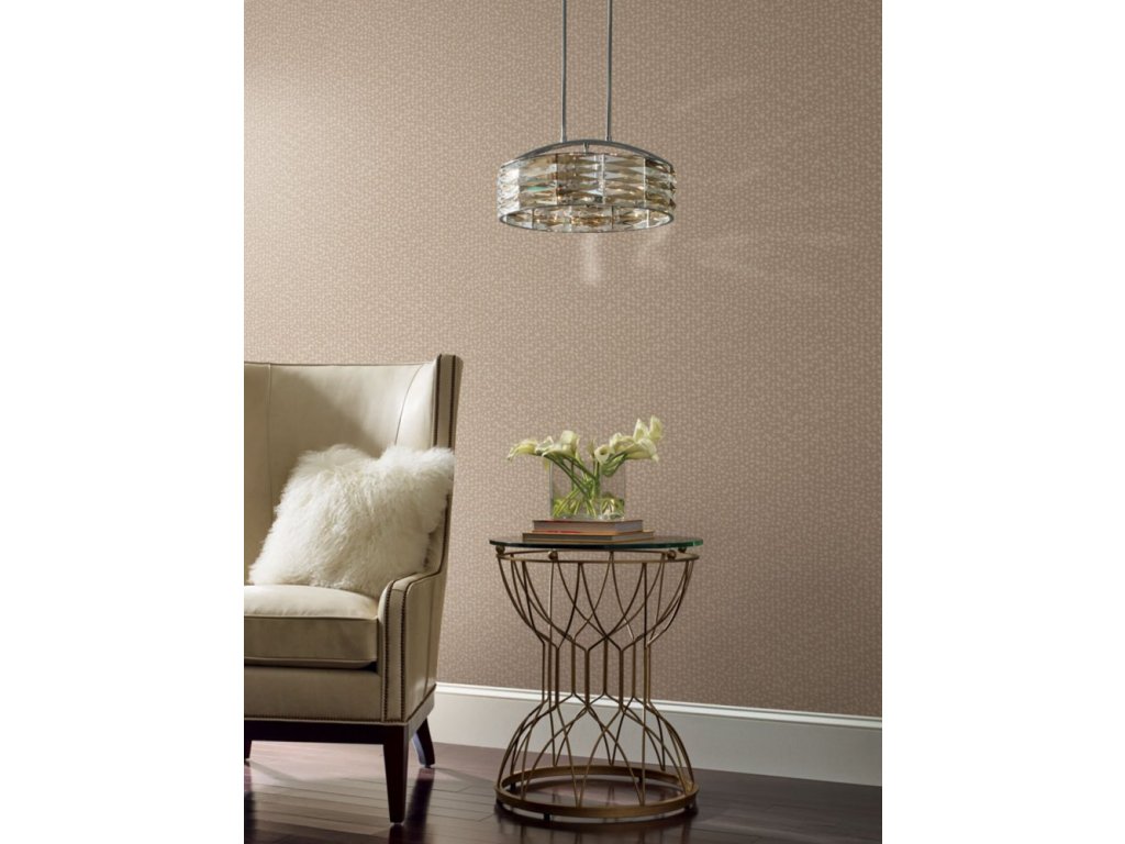 Jemně plastická hnědá vliesová tapeta na zeď, krémové flíčky.