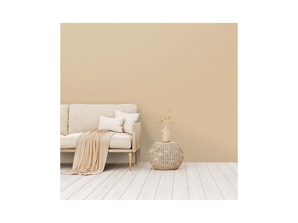 Luxusní vliesová tapeta s vinylovým povrchem, odstíny pololesklé béžové, autentický vzhled hrubší textilie - střídání hrubé a jemné textilní struktury.