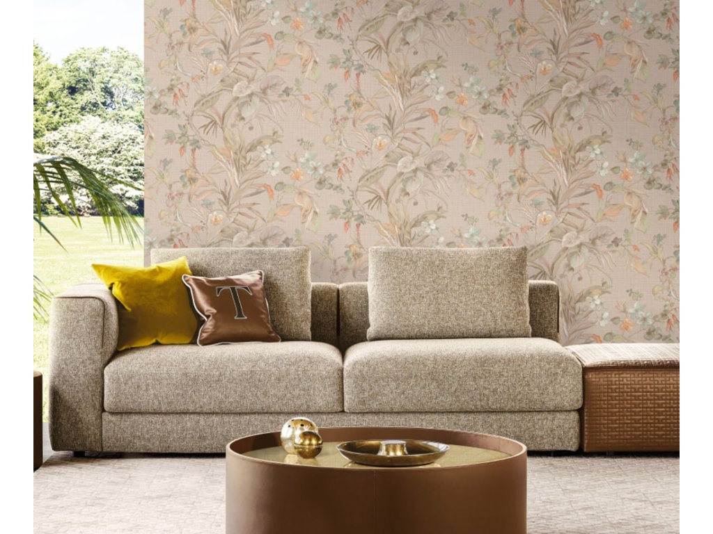Luxusní vliesová tapeta na zeď, béžová, květiny, listy, Z30338, Casa 8, Trussardi, velikost 10,05 x 0,7 m