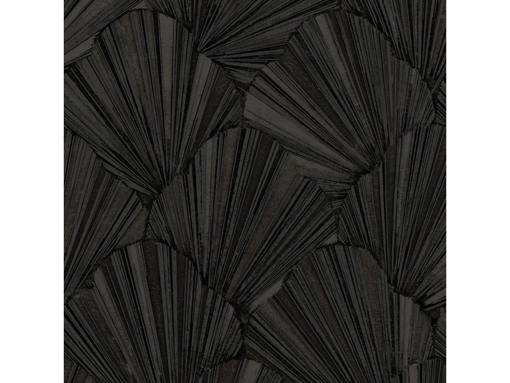 Vliesová tapeta s vinylovým povrchem, odstíny pololesklé černé se stříbrnými liniemi, plastický vějířový vzor.