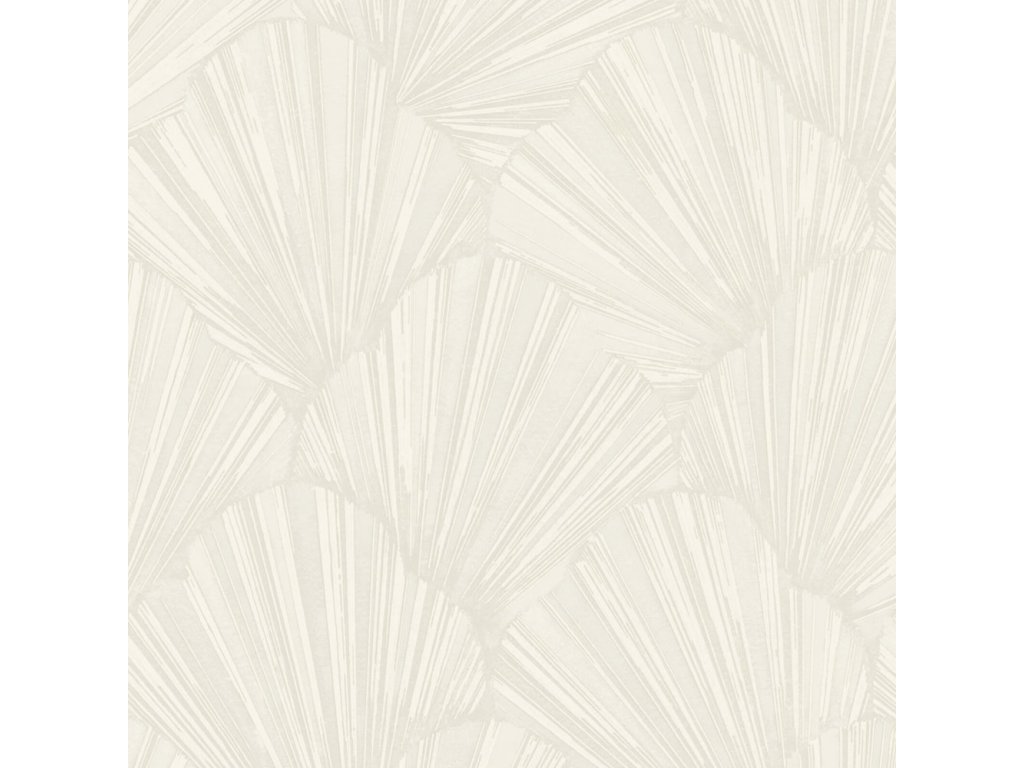 Vliesová tapeta s vinylovým povrchem, odstíny pololesklé krémové s perlovými akcenty, plastický vějířový vzor.
