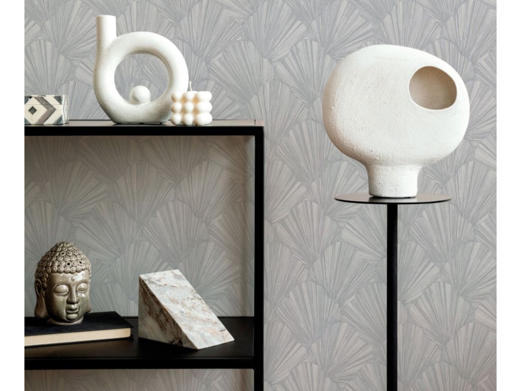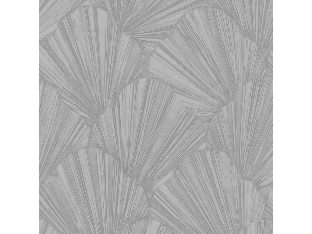 Vliesová tapeta s vinylovým povrchem, stříbrný pololesk, plastický vějířový vzor.