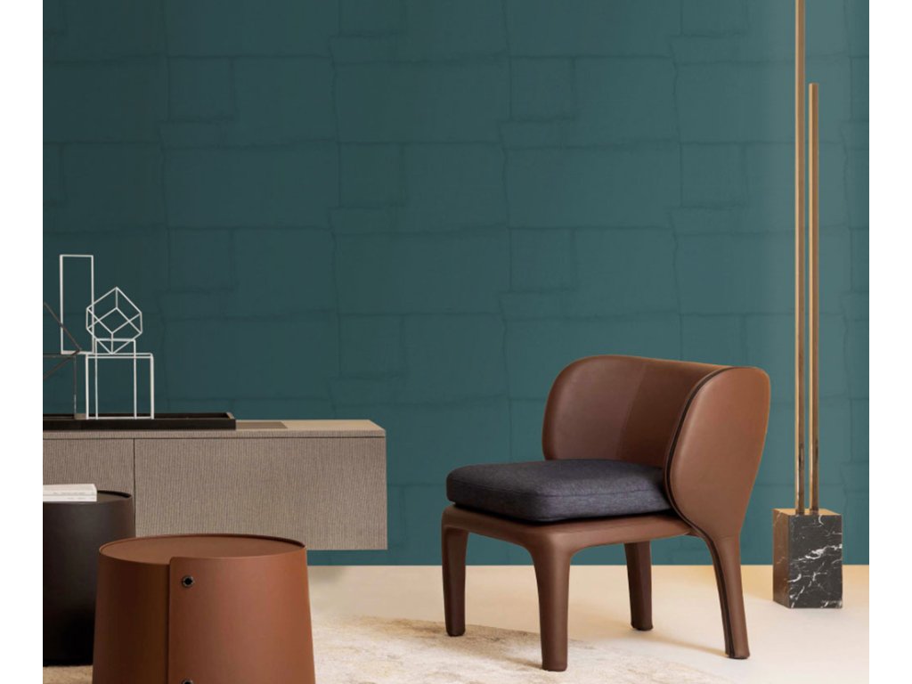 Luxusní vliesová tapeta s vinylovým povrchem, design nepravidelného kamenného obkladu v odstínech tmavé tyrkysové.
