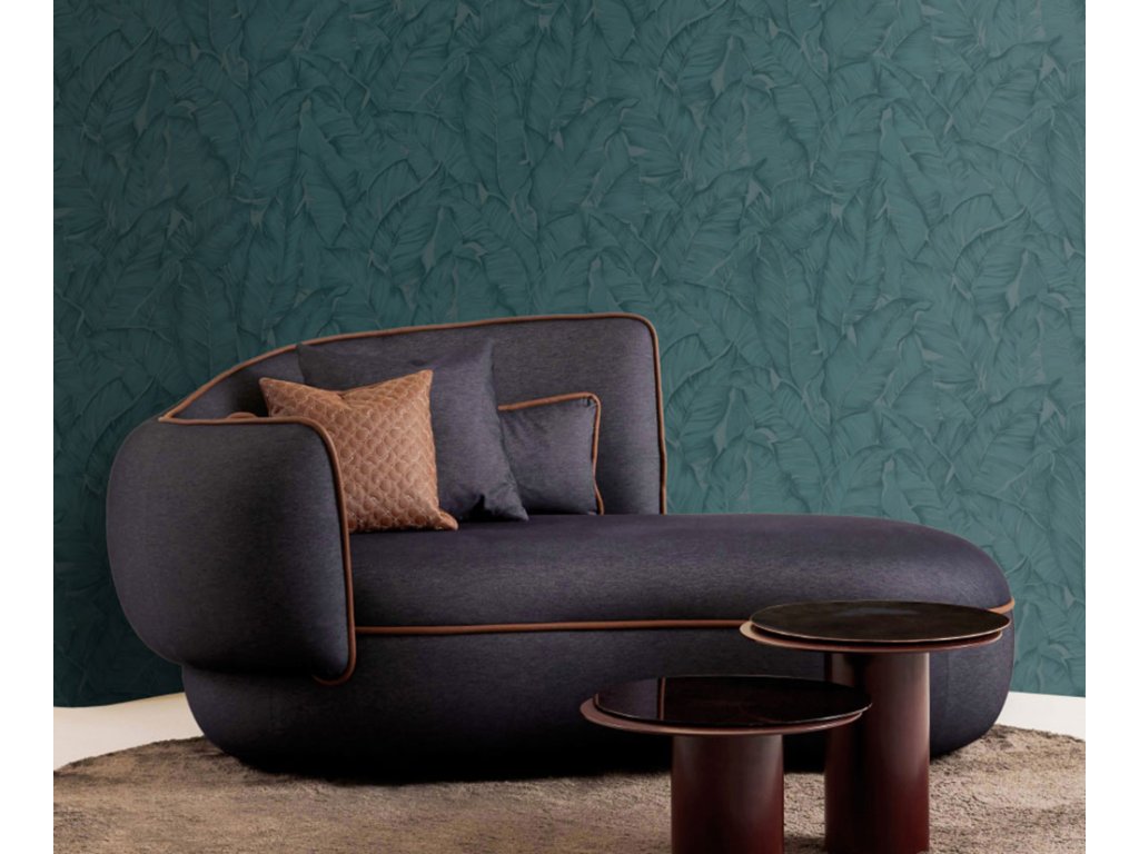 Luxusní vliesová tapeta s vinylovým povrchem, plastické listy v odstínech tmavé tyrkysové.