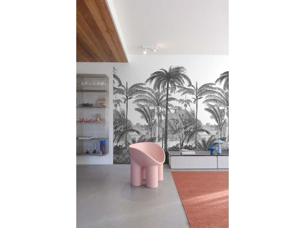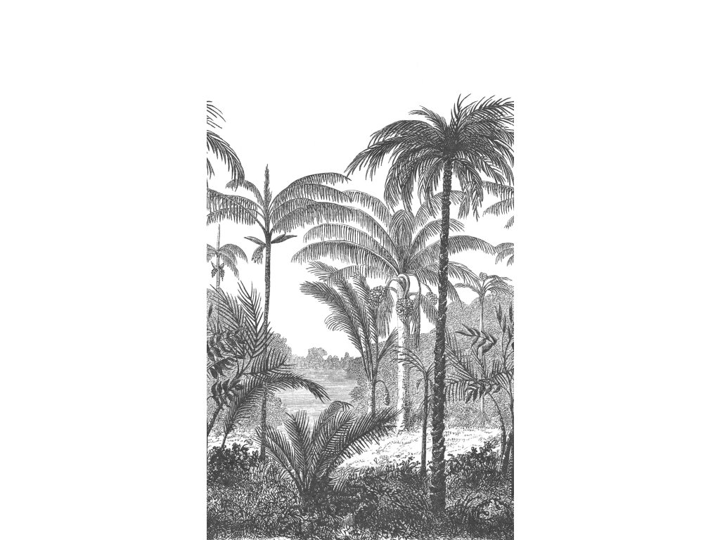 Vliesová fototapeta s vinylovým povrchem, černo-bílý motiv krajiny s palmami.
