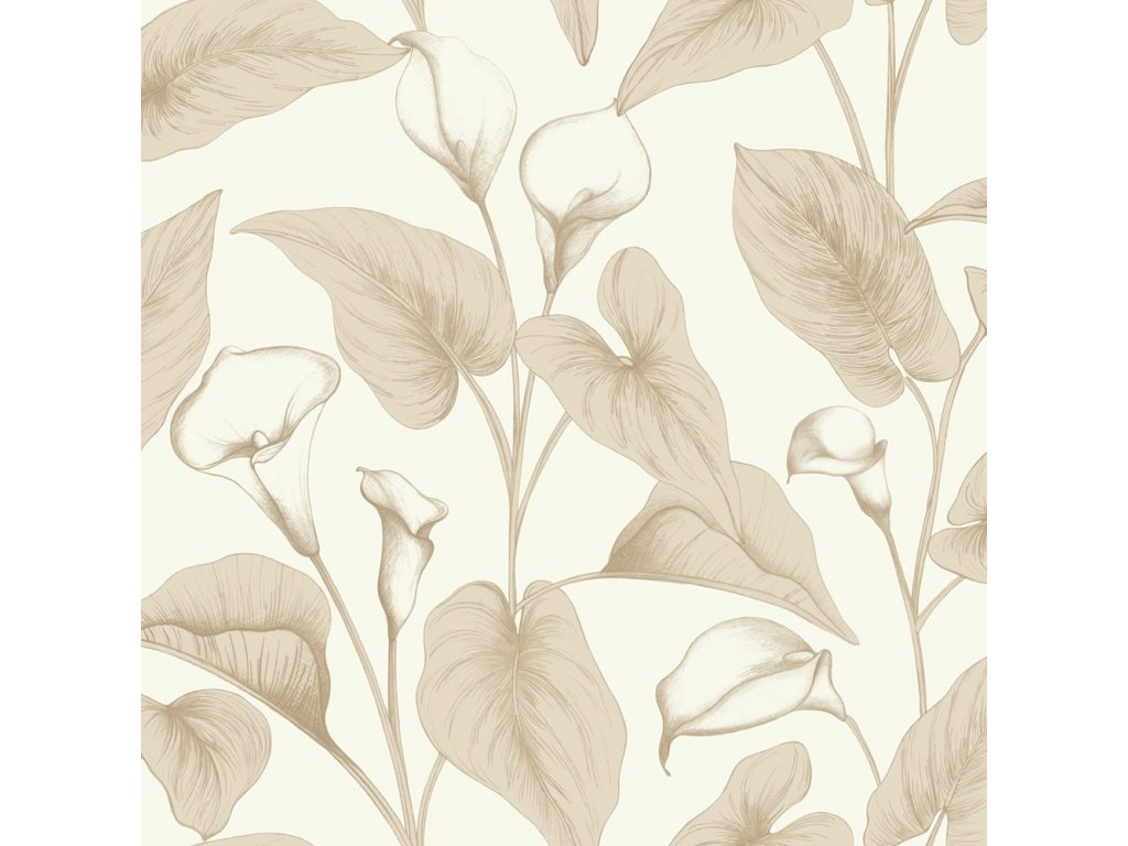 Vliesová tapeta na zeď, béžová, květiny, listy, A83602, Inia, Grandeco, velikost 10,05 x 0,53 m