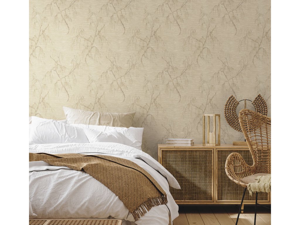 Vliesová tapeta s vinylovým povrchem, kvetoucí bříza, béžová.