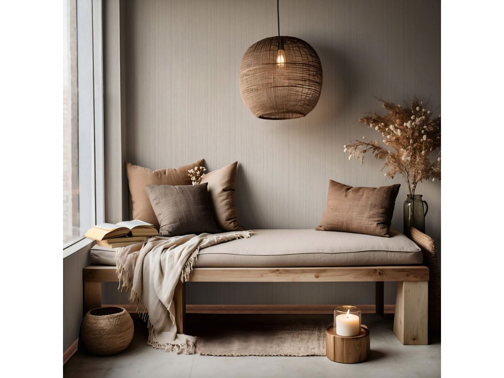 Vliesová tapeta s vinylovým povrchem, odstíny béžové, jemně plastická látková textura.