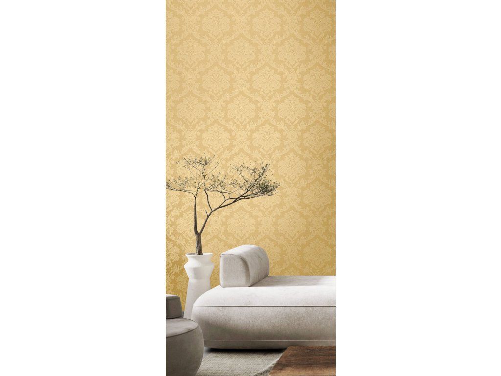 Vliesová tapeta s vinylovým povrchem, zámecký damaškový vzor, béžový podklad, světle béžový vzor.