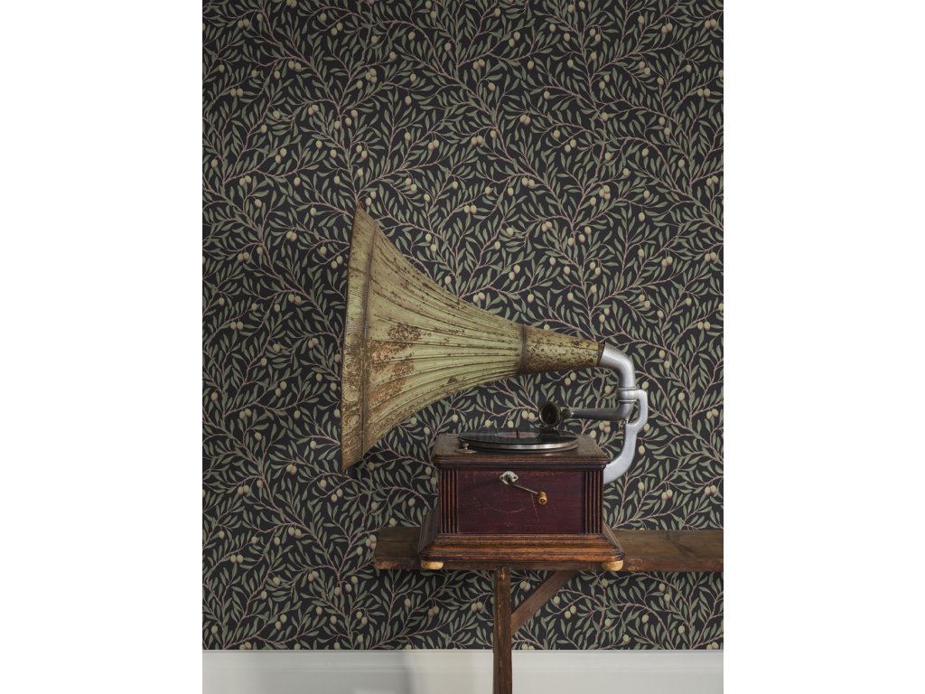 Vliesová tapeta na zeď, černý podklad, motiv olivovníku se zralými plody.