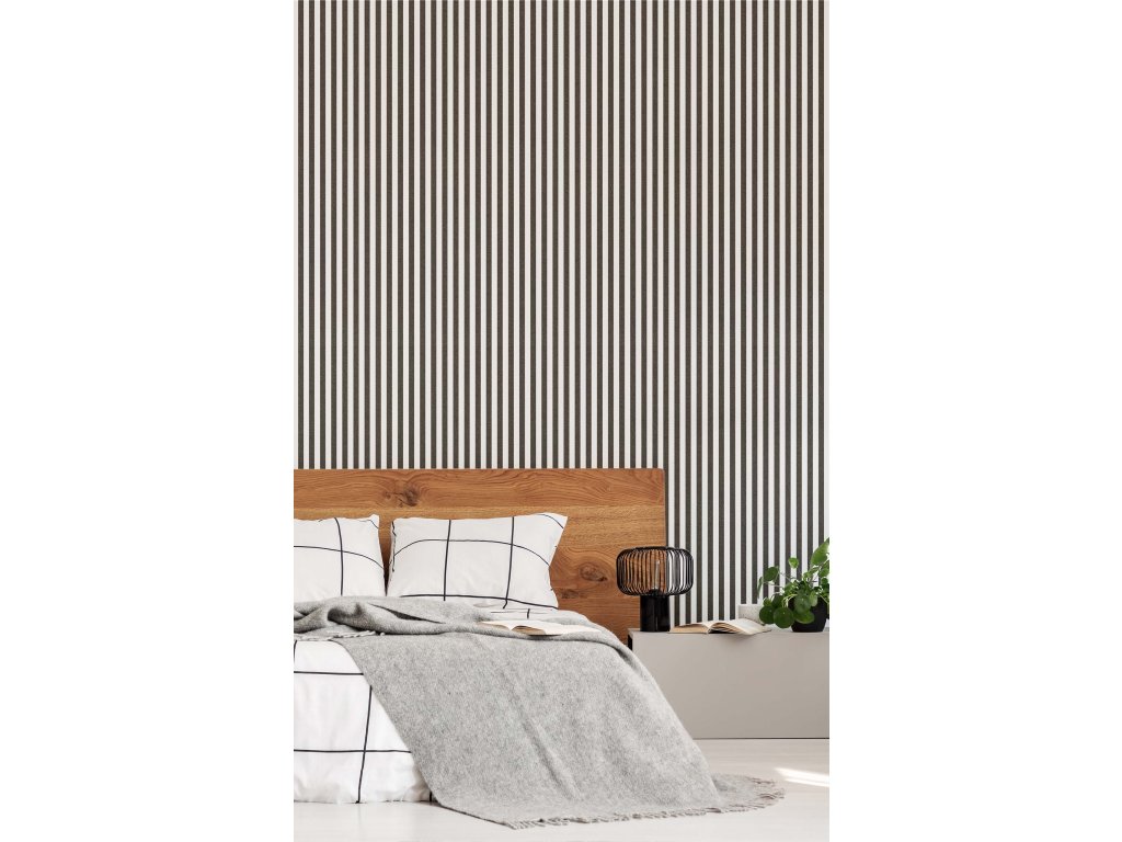 Vliesová tapeta s vinylovým povrchem, imitace proužkované látky v odstínech černé a bílé.