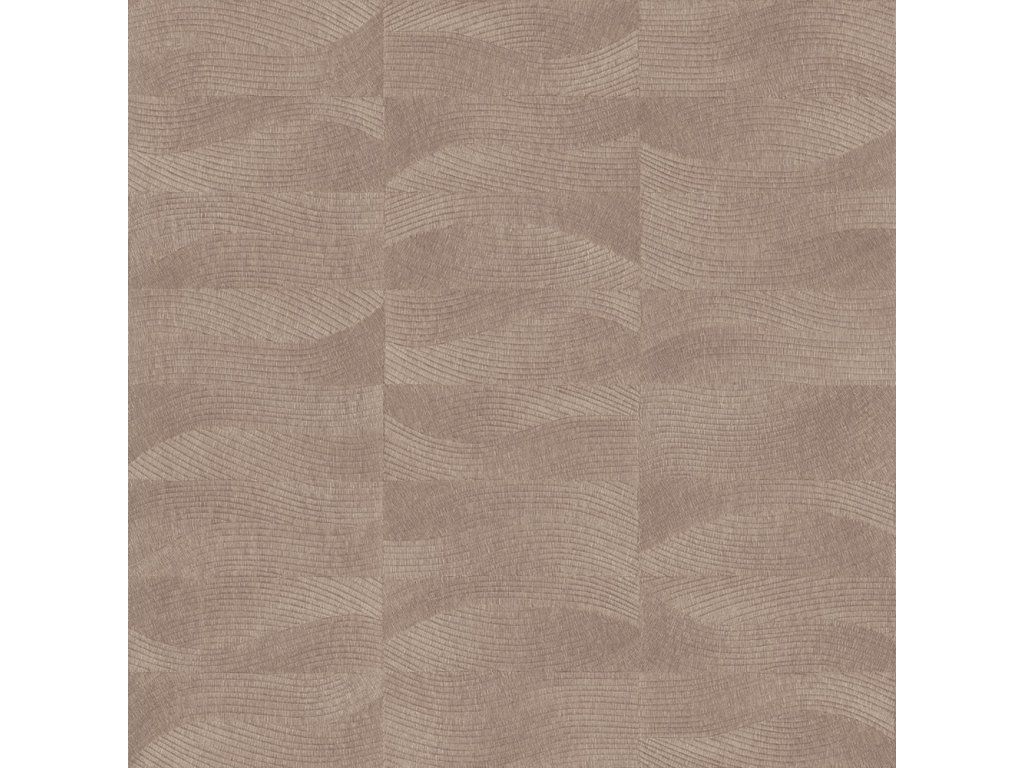 Vliesová tapeta s vinylovým povrchem, textura tkaniny, imitace výšivky, vlnky, vzor evokuje pruhy, hnědo červená.