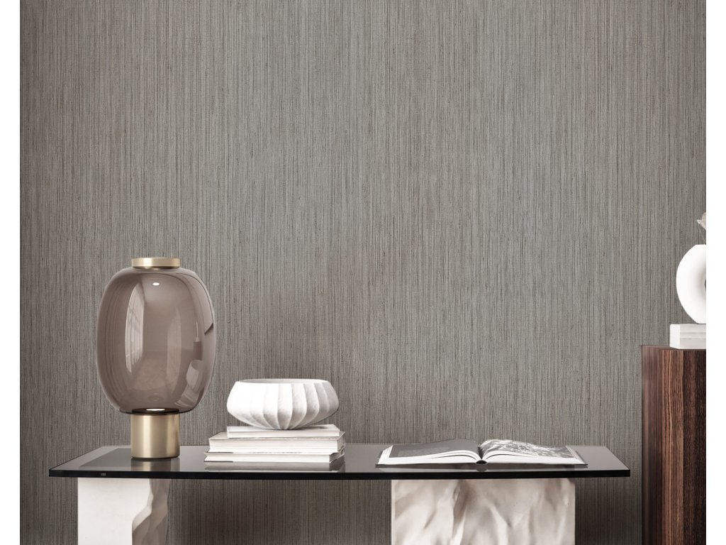 Pololesklá vliesová tapeta s vinylovým povrchem, imitace hnědé tkaniny.