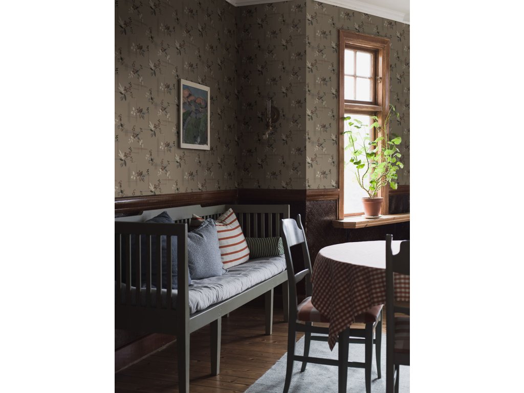 Vliesová tapeta na zeď, hnědá, květiny, 4173, Alla Tiders Hus, Borastapeter, velikost 10,05 x 0,53 m