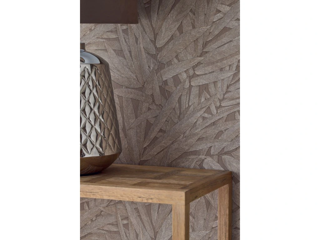 Vliesová tapeta na zeď, vzor listů v odstínech hnědé, jemně plastický podklad.