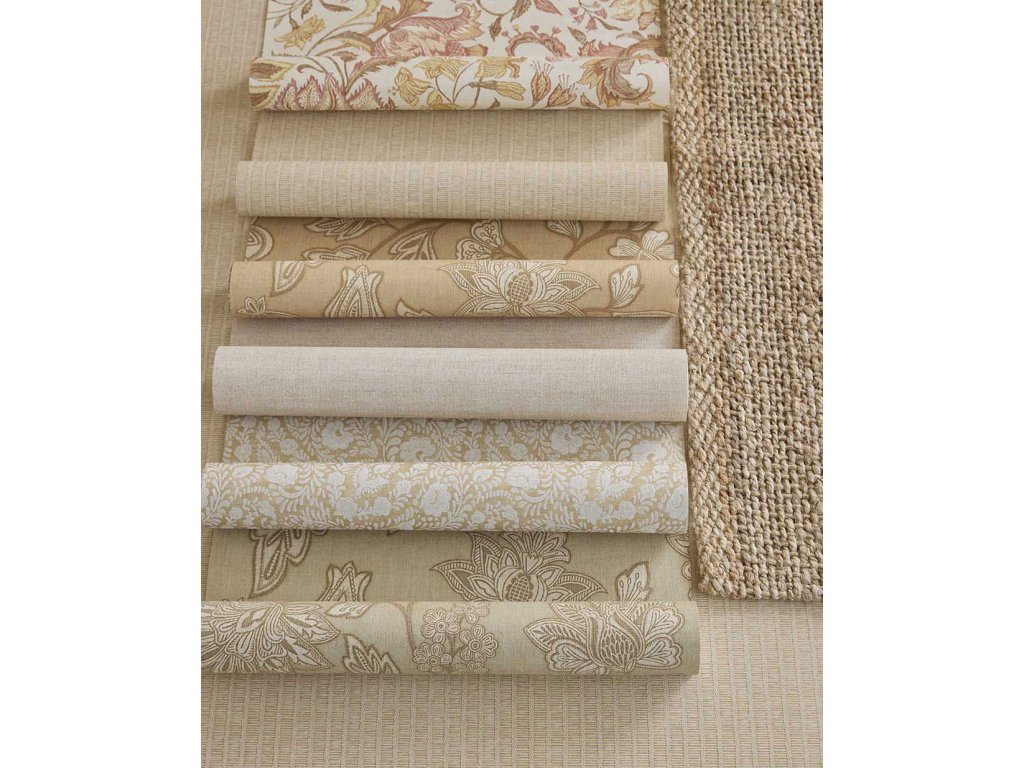 Vliesová tapeta na zeď, textilní struktura, ornamentální květinový vzor v odstínech hnědé, béžové, terakota, nádech do oranžova.