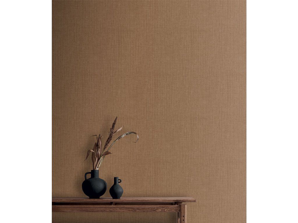 Vliesová tapeta na zeď s plastickou texturou, motiv jemné rohože v odstínech oříškově hnědé.