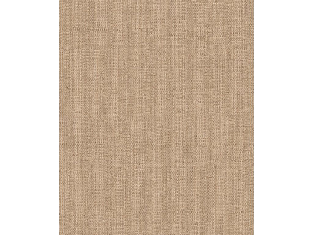 Vliesová tapeta na zeď s plastickou texturou, motiv jemné rohože, v odstínech světle šedo-hnědé.