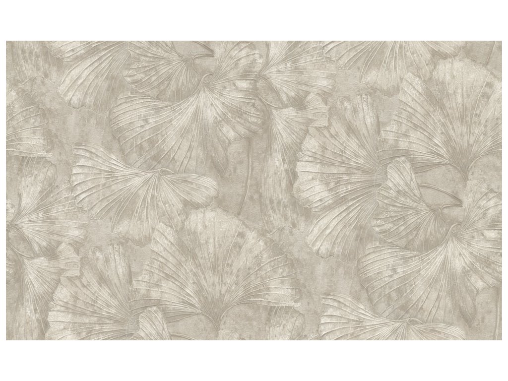 Vliesová tapeta s vinylovým povrchem, listy, odstíny šedé.