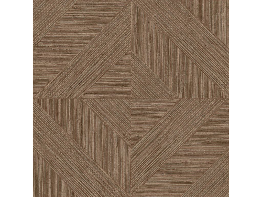Vliesová tapeta na zeď s plastickou texturou jemné rohože, parketový vzor, v odstínech čokoládové hnědé a oříškové hnědé.