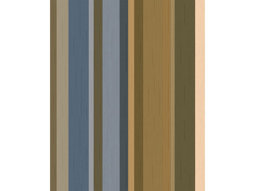 Vliesová tapeta s vinylovým povrchem, látková textura s pruhy v odstínech modré, šedé, hnědé.