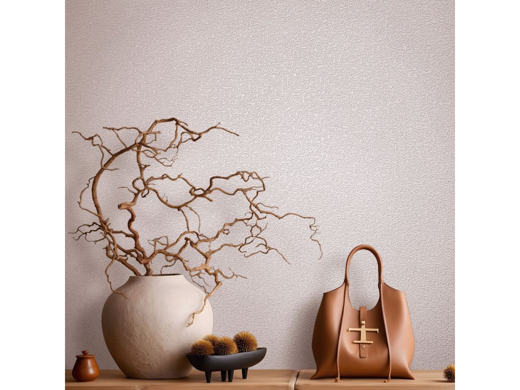 Vliesová tapeta s vinylovým povrchem, jemná růžová, jemně plastická textura.