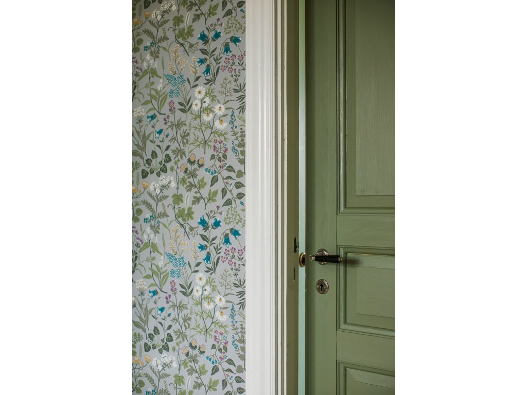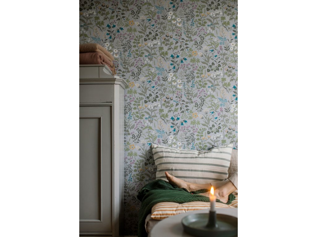 Vliesová tapeta na zeď, šedá, luční květiny, 4182, Alla Tiders Hus, Borastapeter, velikost 10,05 x 0,53 m