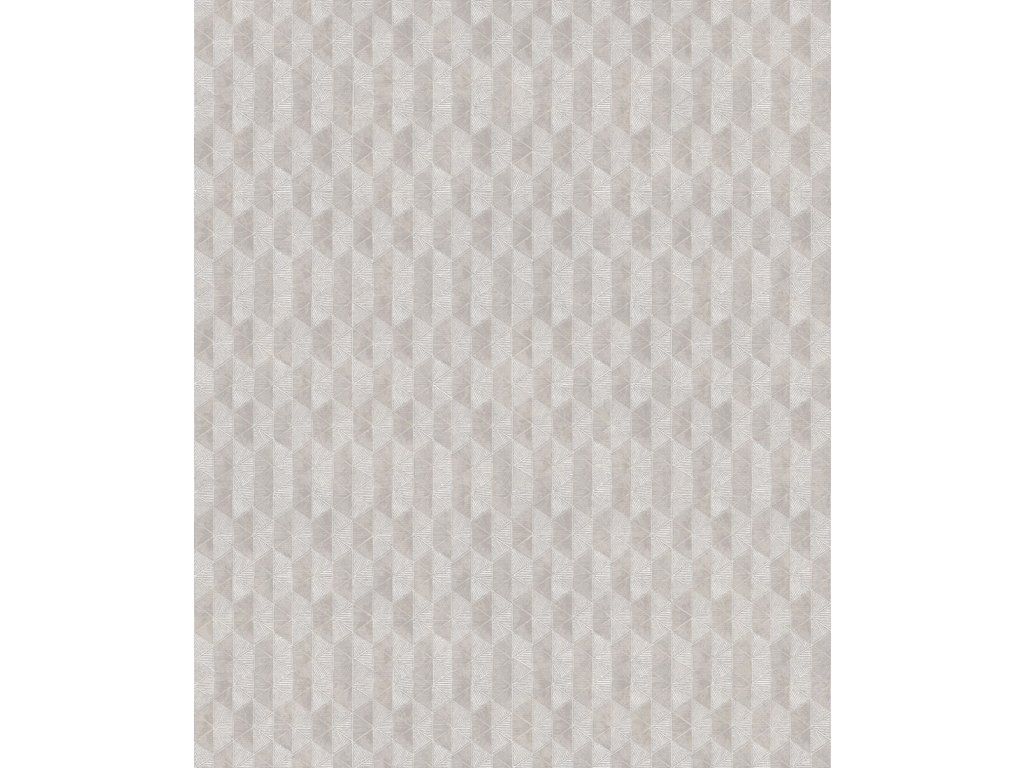 Vliesová tapeta na zeď, jemně plastický geometrický vzor v odstínech šedo-béžové a šedo-stříbrné.