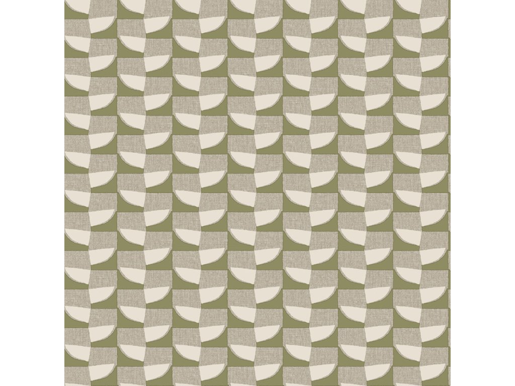 Vliesová tapeta s vinylovým povrchem, grafický vzor v odstínech šedo-béžové, zelené a krémové.