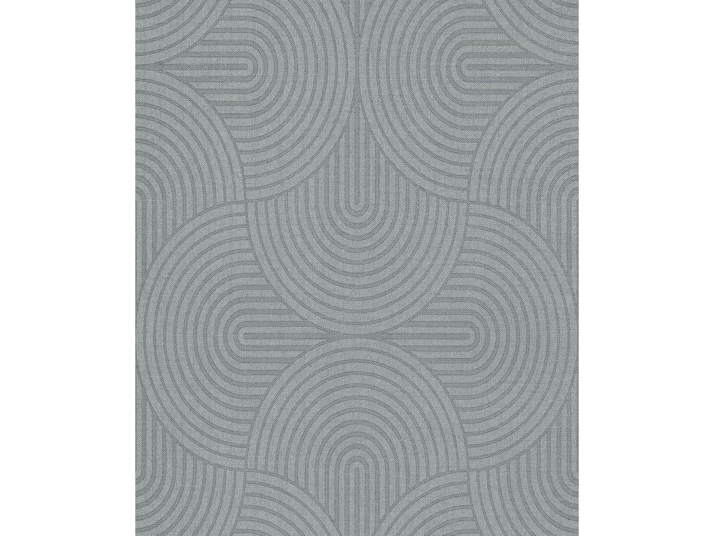 Vliesová tapeta na zeď, grafický obloukový vzor, odstíny šedozelené s jemným pololeskem, textura evokuje látku.