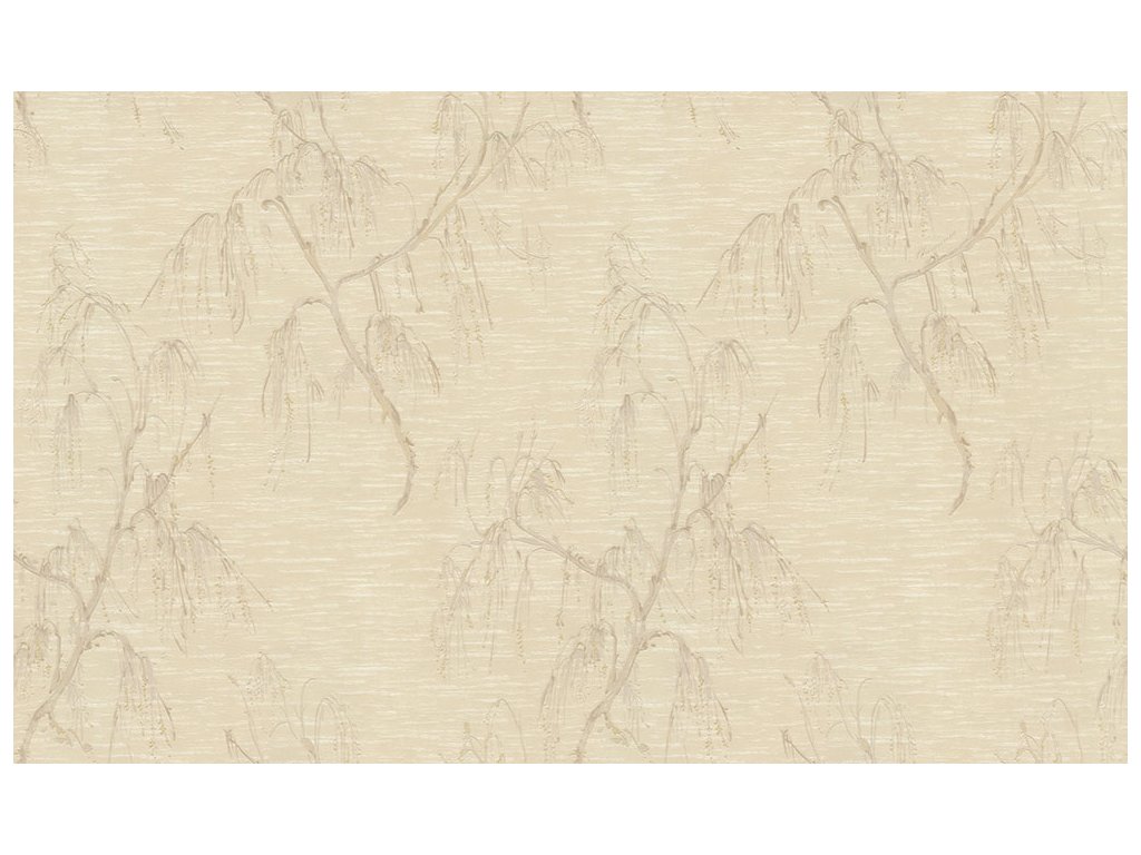 Vliesová tapeta s vinylovým povrchem, kvetoucí bříza, světle hnědá, béžová.