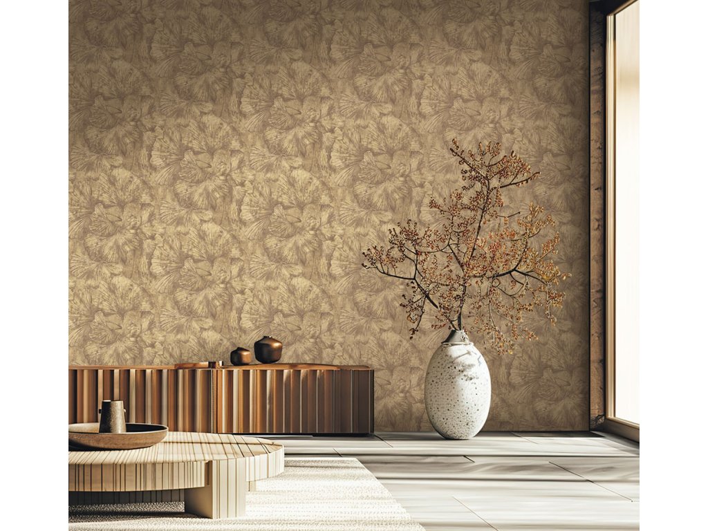 Vliesová tapeta s vinylovým povrchem, listy, tmavě hnědá.