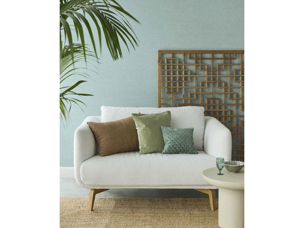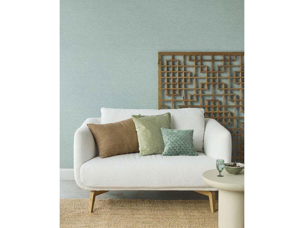 Vliesová tapeta s vinylovým povrchem, látková textura v odstínech tyrkysové.