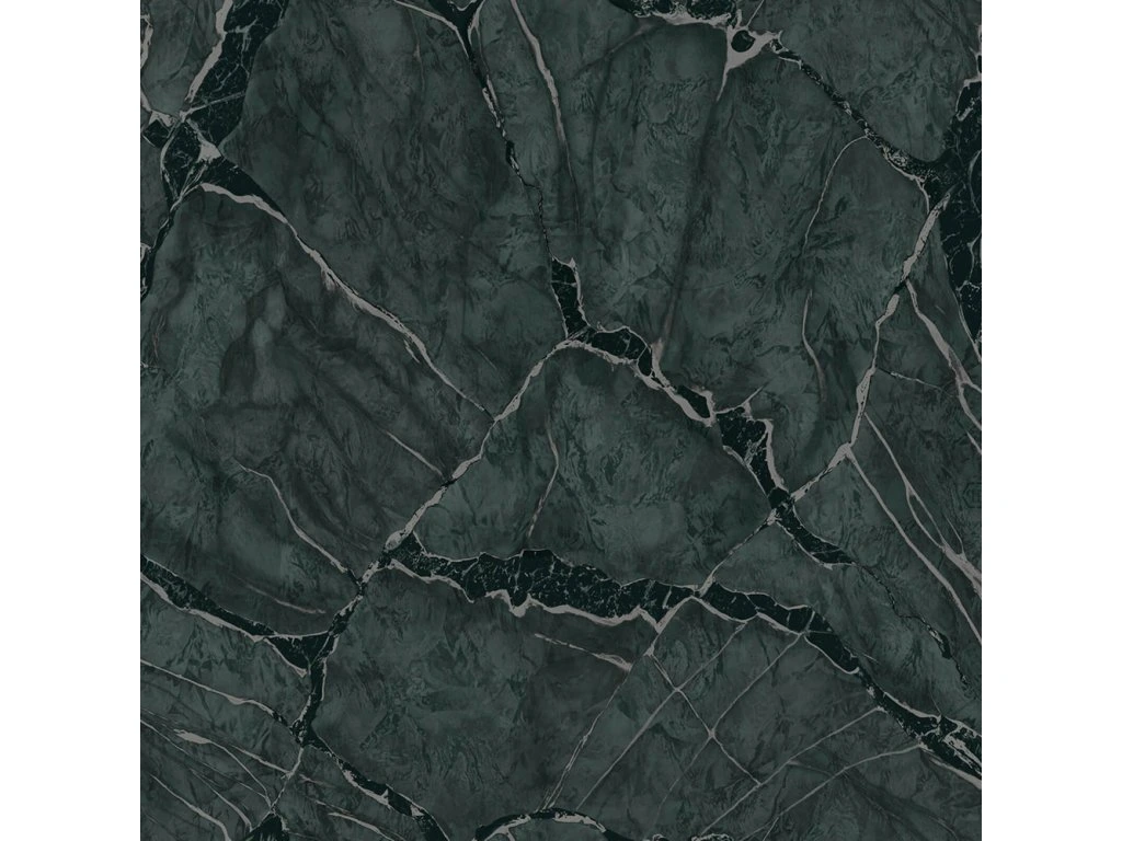 Luxusní vliesová tapeta na zeď s vinylovým povrchem, plastická textura, imitace mramoru, tmavě zelený podklad, černé a stříbrné žilkování.