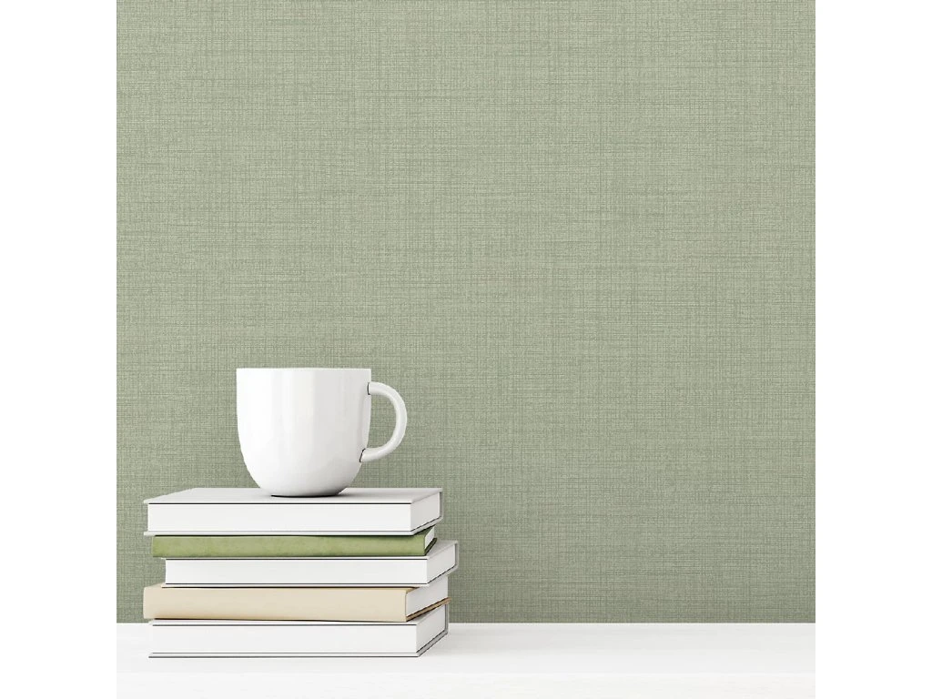 Zelená vliesová tapeta na zeď, vzhled a struktura látky.