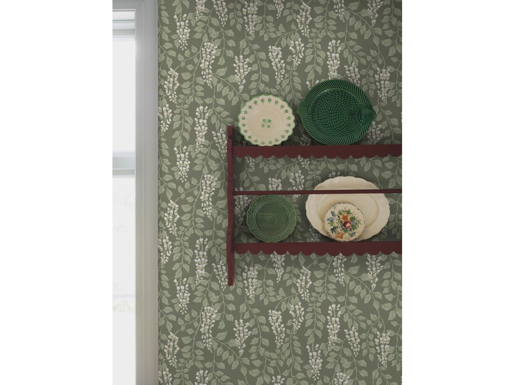 Vliesová tapeta na zeď, zelená, květy Vistárie, 5710, Orangeri, Borastapeter, velikost 10,05 x 0,53 m