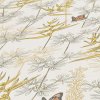 Originální vliesová tapeta na zeď s přírodním motivem květů strelície a motýlů v bílé a žluté barvě na bílém pozadí. Pořiďte si s touto tapetou kousek přírody k vám domů.