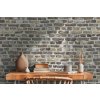 Strukturovaná vliesová tapeta na zeď s motivem šedých a béžových cihel.